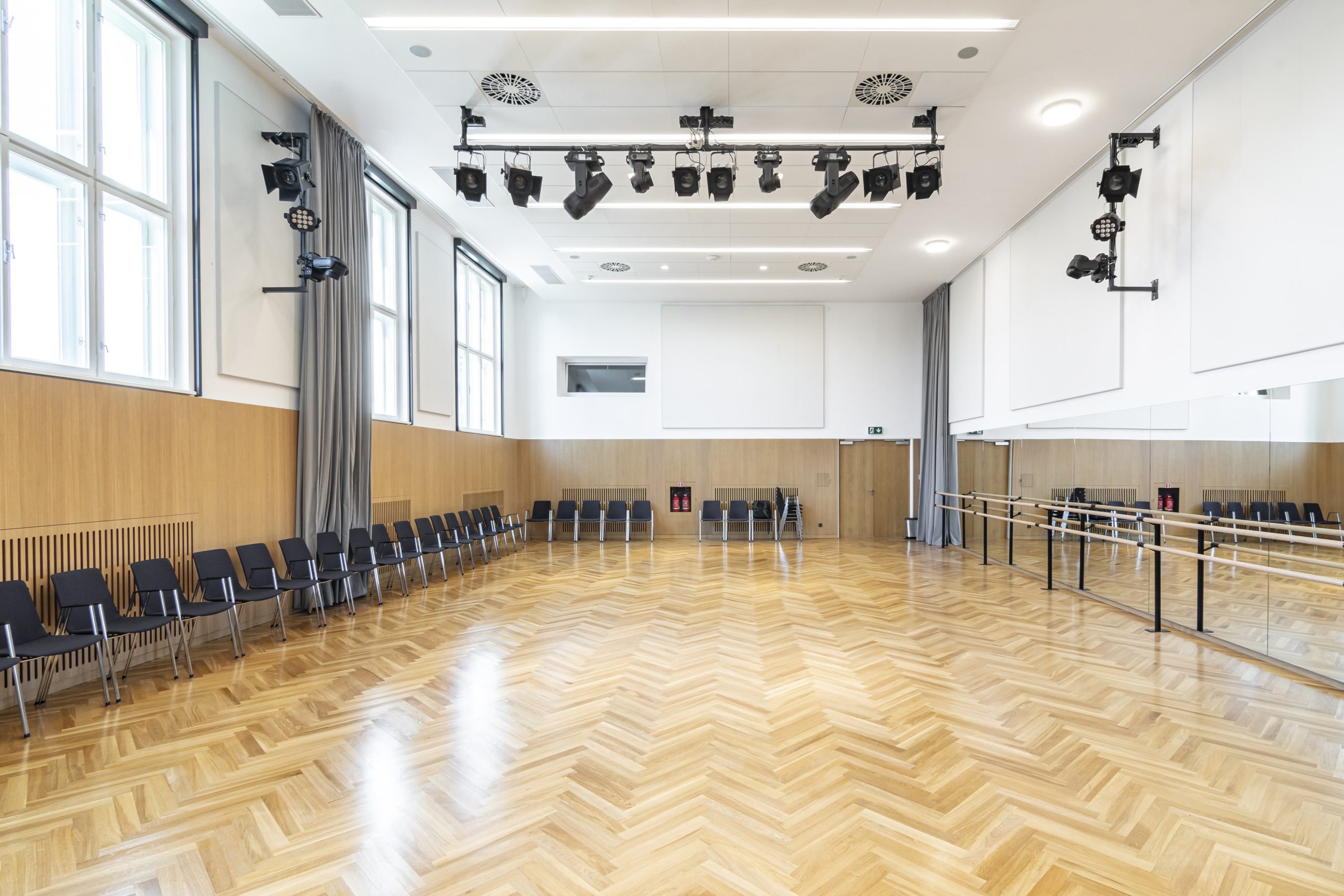 Priestory Tanečného štúdia a Malej sály sú vybavené zrkadlami a baletnými tyčami, ako aj modernou zvukovou technikou na ktorú si môžete pripojiť svoj telefón, alebo iné zariadenie na prehrávanie hudby.
