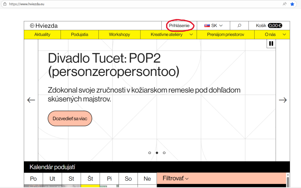 1: Prihláste, respektíve zaregistrujte sa na: https://www.hviezda.eu/